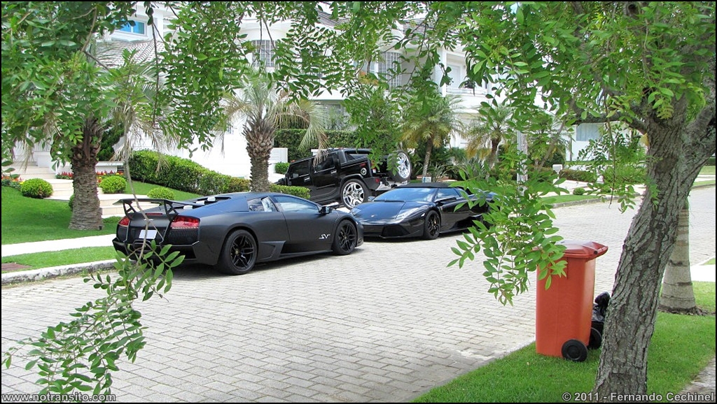 Não lembro se foi no Twitter ou aqui mesmo, mas cogitaram que o Lamborghini valeria mais que a casa. Posso afirmar que apenas um deles não chega a valer mais que a casa, mas tenho certeza que os dois modelos juntos valem o mesmo valor ou até mais que a casa, isto sem contar os outros carros que estavam na garagem e o Hummer H2 SUT com rodas que valem mais que o próprio carro.